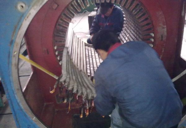二.拆開機(jī)體,清理殼體內(nèi)腔、轉(zhuǎn)子和滑環(huán)上的污泥和水漬,檢查繞組是否脫焊,電刷是否在電刷架中銹蝕卡死,電刷壓力是否正常,電刷與滑環(huán)表面是否貼緊,如發(fā)現(xiàn)電動機(jī)故障應(yīng)排除。