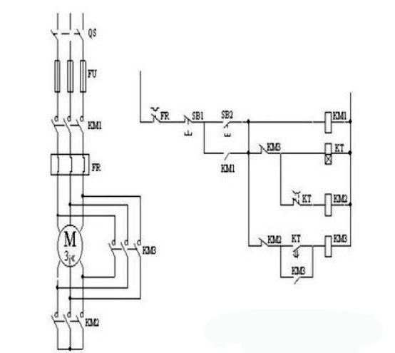 電機要實現(xiàn)正反轉(zhuǎn)控制,將其電源的相序中任意兩相對調(diào)即可(我們稱為換相),通常是V相不變,將U相與W相對調(diào)節(jié)器,為了保證兩個接觸器動作時能夠可靠調(diào)換電動機的相序,接線時應使接觸器的上口接線保持一致,在接觸器的下口調(diào)相。由于將兩相相序?qū)φ{(diào),故須確保二個KM線圈不能同時得電,否則會發(fā)生嚴重的相間短路故障,因此必須采取聯(lián)鎖。為安全起見,常采用按鈕聯(lián)鎖(機械)與接觸器聯(lián)鎖(電氣)的雙重聯(lián)鎖正反轉(zhuǎn)控制線路(如下圖所示);使用了按鈕聯(lián)鎖,即使同時按下正反轉(zhuǎn)按鈕,調(diào)相用的兩接觸器也不可能同時得電,機械上避免了相間短路。另外,由于應用的接觸器聯(lián)鎖,所以只要其中一個接觸器得電,其長閉觸點就不會閉合,這樣在機械、電氣雙重聯(lián)鎖的應用下,電機的供電系統(tǒng)不可能相間短路,有效地保護了電機,同時也避免在調(diào)相時相間短路造成事故,燒壞接觸器。