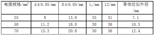 1.具體方桉采用壓接方式將接線螺栓與電纜連接起來,首先要解決的問題有:黃銅H62壓接易斷裂;黃銅H62導電性比紫銅差,需增大壓接面積及導電面積;黃銅壁厚,壓接力大。根據(jù)這些難點設(shè)計合理的壓接結(jié)構(gòu),制作試件進行壓接試驗。各項試驗參數(shù)均應穩(wěn)定控制在標準范圍內(nèi):