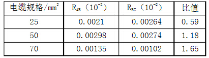 根據(jù)標準需檢測A、B和B、C間電阻(分別為如、R彤),端頭壓接部位的電阻與所連接同長度導線電阻的比值為:(2RAB一RBC)/RBC,壓接電阻檢測結(jié)果如圖所示。
