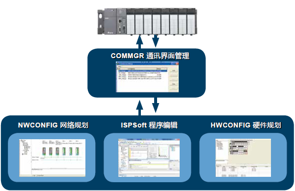 整合運動控制編輯:ISPSoft V3將邏輯編程與運動編程整合在同一套軟件上,并提供符合國際標準規(guī)格 PLCopen? 的功能塊以及臺達提供的豐富功能塊