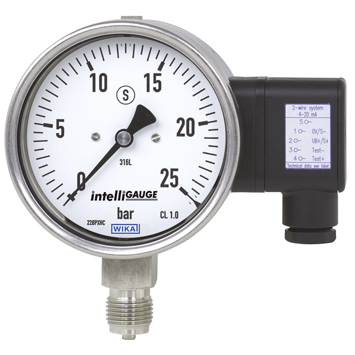 intelliGAUGE系列的PGT23型壓力表采用專利技術(shù)(歐洲專利號:EP 06113003,其他類別),可用于在受限制空間內(nèi)的測量點進(jìn)行測量。如果您希望在本地顯示過程壓力的同時,也將信號傳遞至中央控制器或遠(yuǎn)程控制室,那么該型號壓力表將是理想選擇。