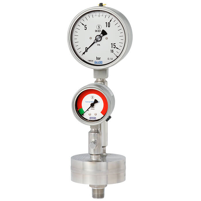 當發(fā)生隔膜破裂時,壓力測量儀表的內(nèi)置二級隔膜可將過程與外界進行隔離。整個系統(tǒng)的測量功能仍然不受限制,但必須立即更換已破裂的隔膜。