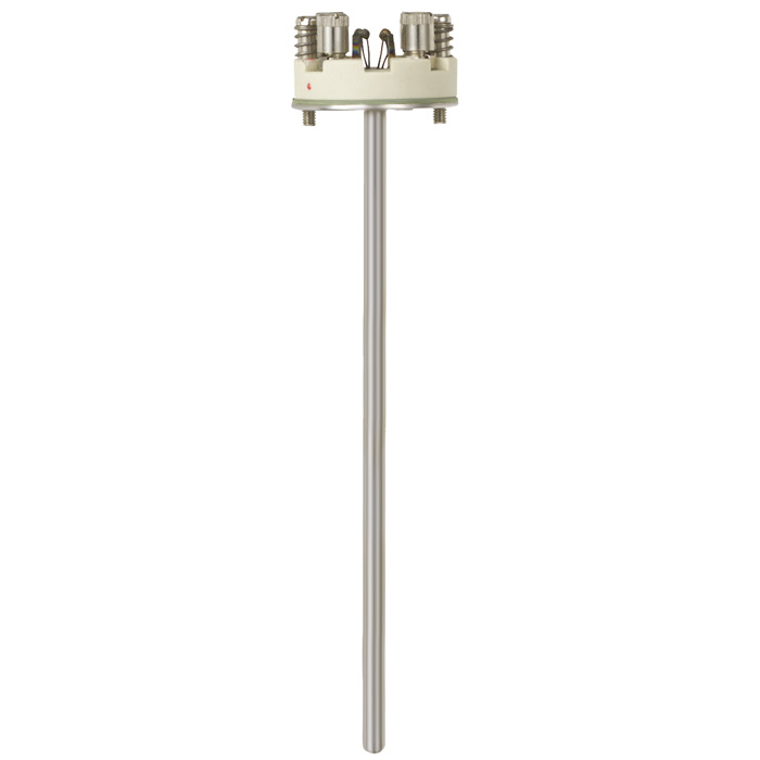 根據(jù)DIN43735設(shè)計(jì)標(biāo)準(zhǔn),熱電阻溫度計(jì)測量探桿安裝在保護(hù)裝置中,無護(hù)套保護(hù)的情況只建議在特殊情況下使用。這些測量探桿由彈性鎧裝電纜制成。感溫元件位于測量探桿底部。這種形式帶有裝載彈簧,確保測量探桿伸到護(hù)套底部。