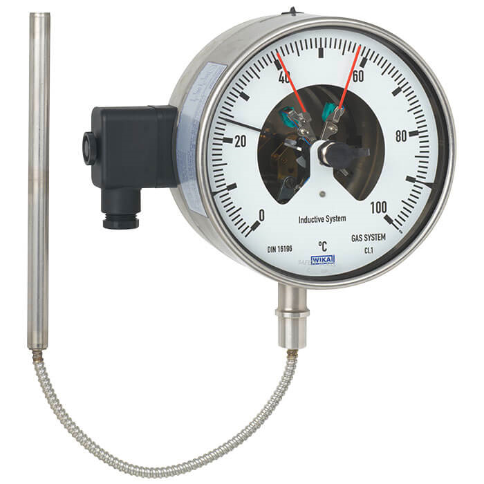 當過程溫度需要就地顯示或在難以接近的地方顯示,同時又必須切換電路時,可以使用帶電接點的氣包式溫度計。