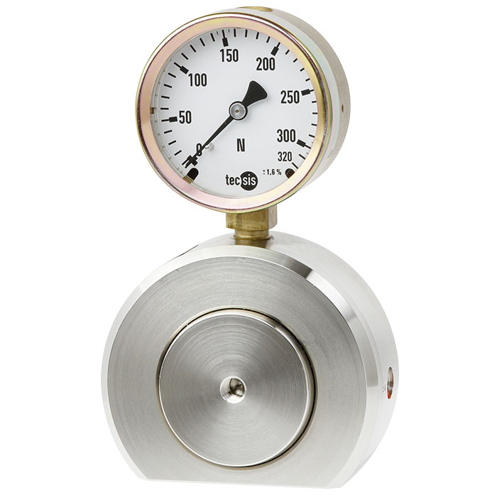 該產(chǎn)品的測量采用了液壓原理:當(dāng)力作用于活塞時(shí),液壓壓力增大,其液壓壓力可以顯示在與其相連的儀表上,該儀表的刻度可根據(jù)客戶需求定制,如N、kN、kg、t。