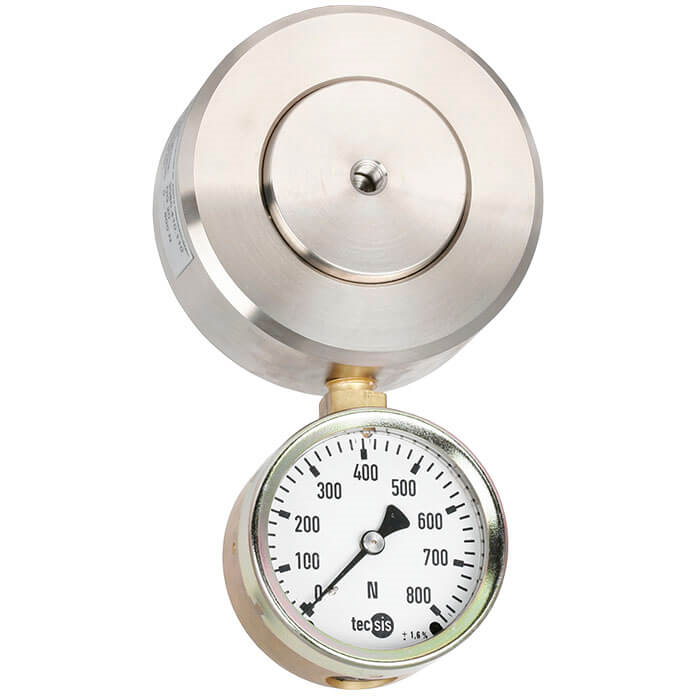 使用液壓原理測(cè)量力:作用在活塞上的力導(dǎo)致壓力增加,這可以在連接的顯示儀器上看到。顯示儀表的刻度可以用各種單位來定義(例如,N、kN、kg、t)。